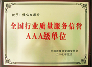 • 全國行業(yè)質(zhì)量服務(wù)信譽AAA級單位