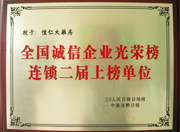 • 全國誠信企業(yè)光榮榜連鎖二屆上榜單位